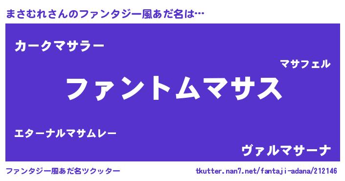 | 男性向けラノベタイトル風あだ名 | 『まさむれの嫁は女の子じゃないと思った?』 |