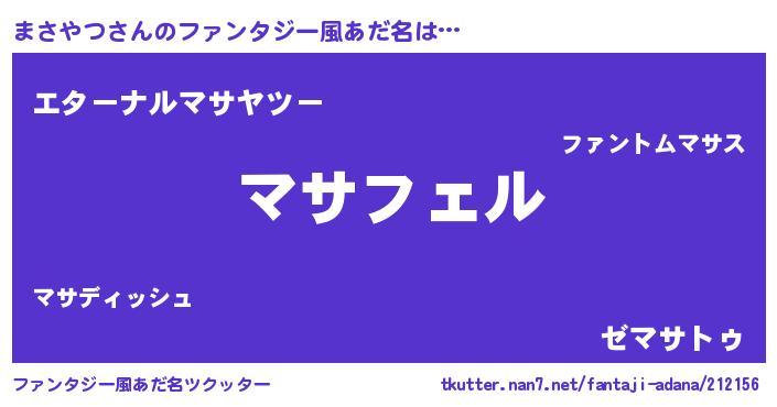 | 男性向けラノベタイトル風あだ名 | 『マサヤツアートオンライン』 |