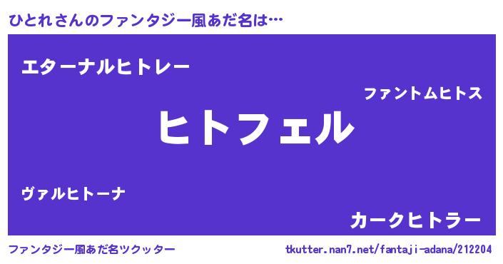 | ヒーロー風カッコイイあだ名 | 『スーパーヒトレ』『ウルトラひとれマン』 |