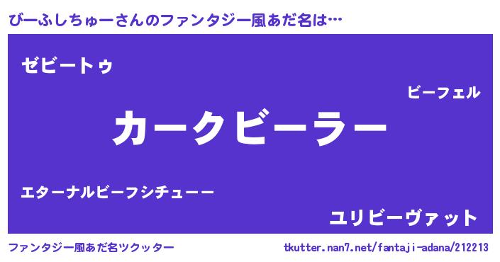 | 男性向けラノベタイトル風あだ名 | 『うちのびーふしちゅーが世界を掌握している!』 |