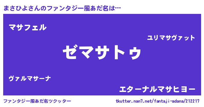 | 欧米人風あだ名 | 『ケンブリッジまさひよ』 |