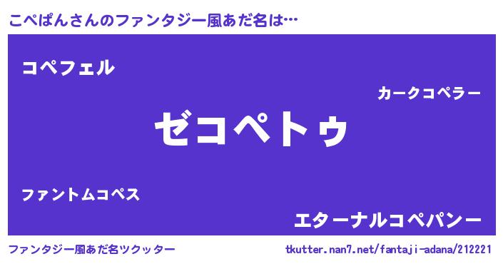| 女子向けラノベタイトル風あだ名 | 『こぺぱんなんてお断りですっ。』 |