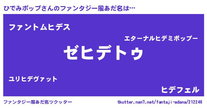 | 男性向けラノベタイトル風あだ名 | 『Re:ひでみポップから始める異世界生活』 |