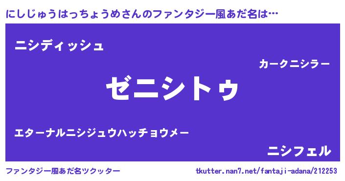 | 意味不明あだ名 | 『自称にしじゅうはっちょうめ』 |