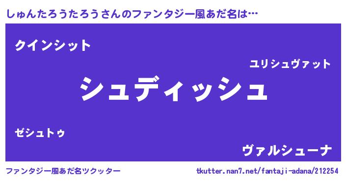 | 男性向けラノベタイトル風あだ名 | 『しゅんたろうたろうという概念が存在しない退屈な世界 』 |