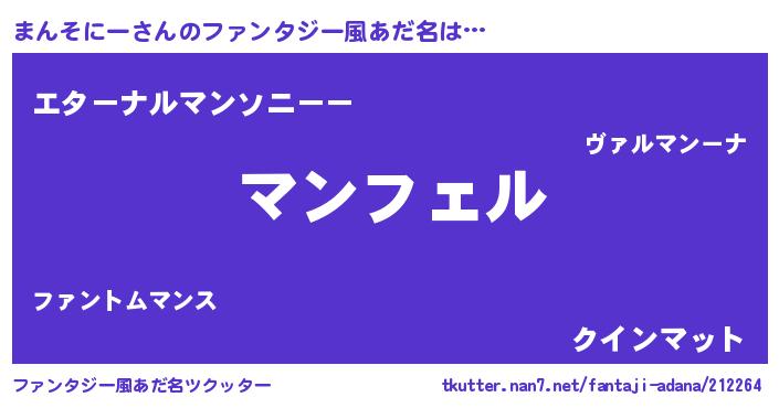 | 男性向けラノベタイトル風あだ名 | 『マンソニーアートオンライン』 |