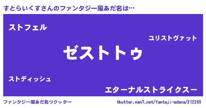 | 意味不明あだ名 | 『自称すとらいくす』 |