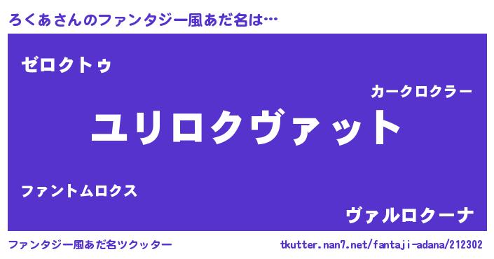 | ヒーロー風カッコイイあだ名 | 『最強戦士ロクア』『仮面ロクダー』 |