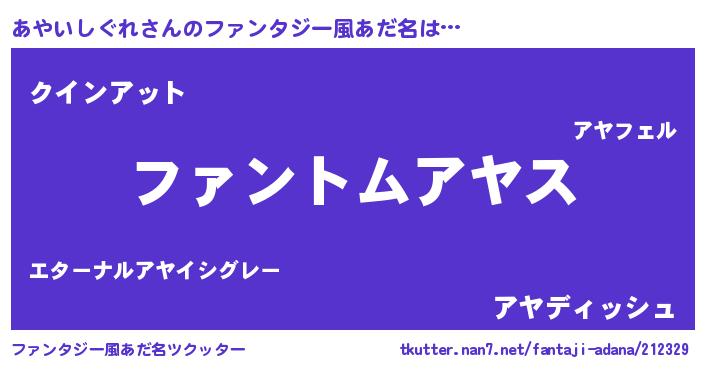 | ヒーロー風カッコイイあだ名 | 『魔戒騎士アヤ』『ネオアヤイシグレ』 |
