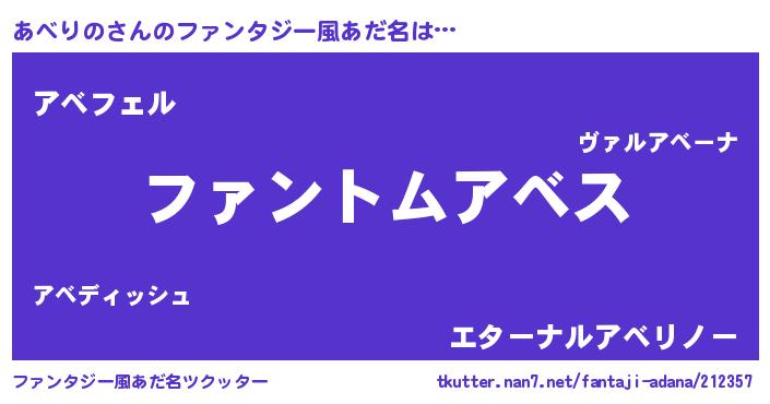 | 女子向けラノベタイトル風あだ名 | 『あべりのの卵を拾いまして』 |