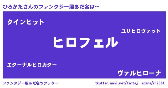 | 男性向けラノベタイトル風あだ名 | 『ひろかたの憂鬱』『魔弾の王とひろかた』 |