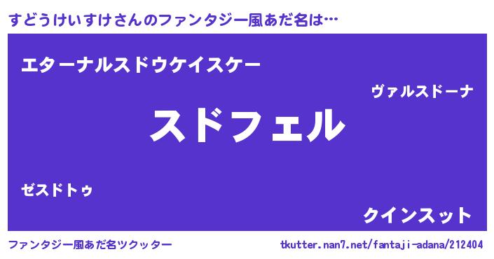 | 男性向けラノベタイトル風あだ名 | 『スドウケイスケアートオンライン』 |