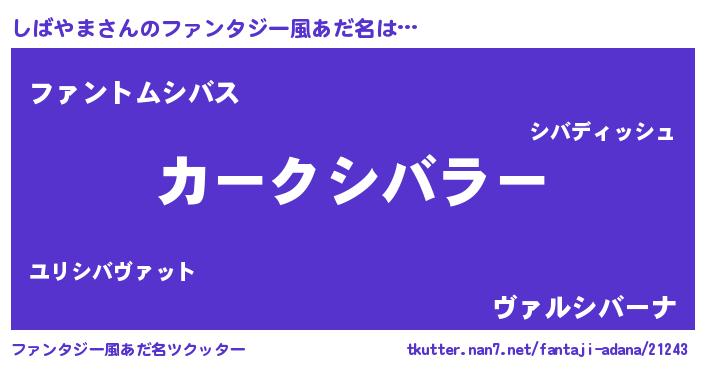 | ヒーロー風カッコイイあだ名 | 『銀牙騎士シバ』『仮面シバダー』 |