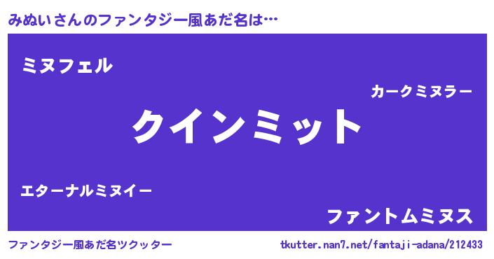 | ヘコむあだ名 | 『みぬふぇ~』『みぬ太郎』『つくし』 |