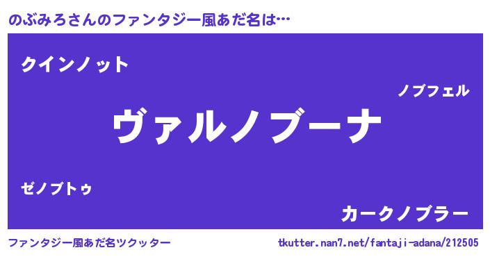 | 男性向けラノベタイトル風あだ名 | 『この素晴らしい世界にのぶみろを!』 |