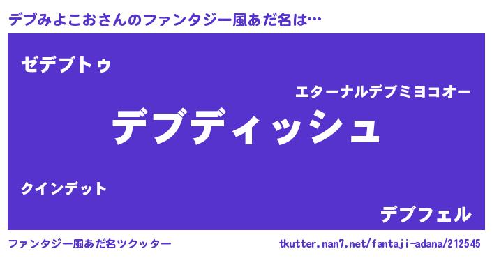 | 男性向けラノベタイトル風あだ名 | 『デブみよこおという概念が存在しない退屈な世界 』 |