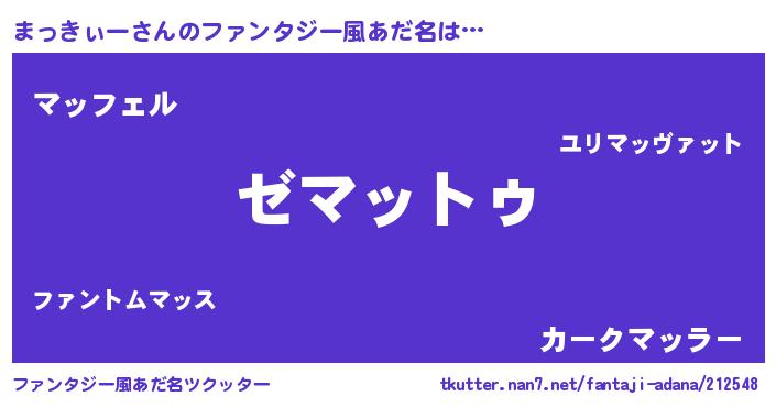 | 男性向けラノベタイトル風あだ名 | 『魔法科高校のまっきぃー』 |