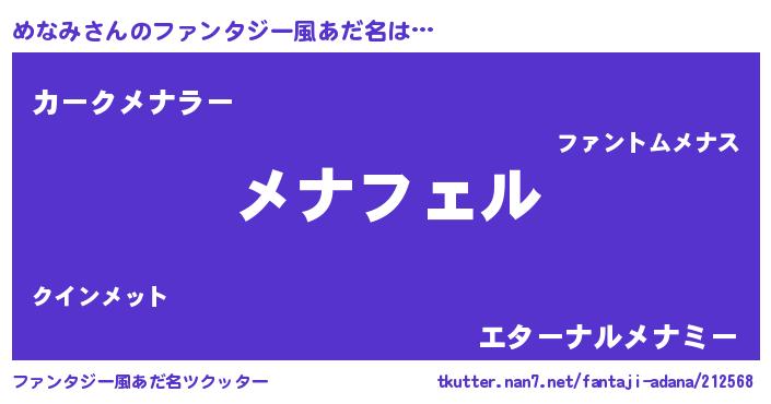 | 意味不明あだ名 | 『ペロリンめなみ』『めなみフォーエバー』 |