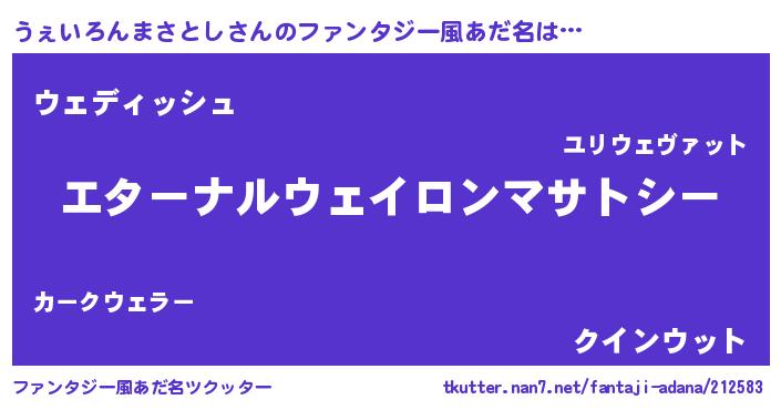 | 女子向けラノベタイトル風あだ名 | 『うぇいろんまさとしの婚約者』 |