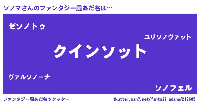 | 男性向けラノベタイトル風あだ名 | 『ノーゲーム・ノーソノマ』 |