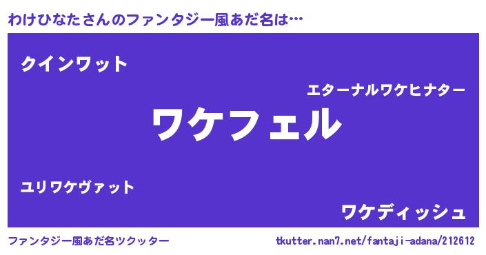 | 胡散臭い通販商品みたいなあだ名 | 『必ず成功する霊験あらたかなお札…その名も「わけひなた」』 |