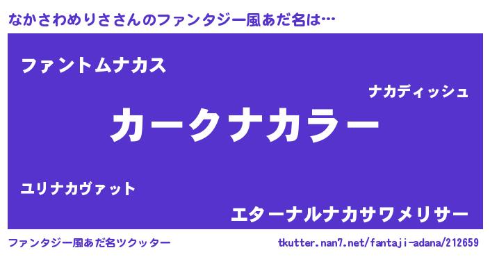 | ヒーロー風カッコイイあだ名 | 『暗黒騎士ナカ』『ネオナカサワメリサ』 |