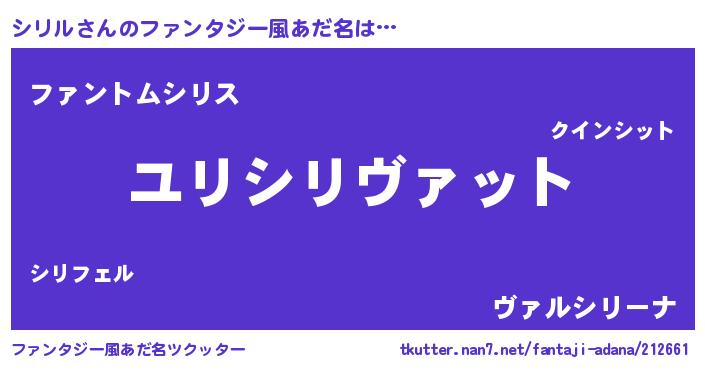 | 男性向けラノベタイトル風あだ名 | 『転生したらシリルだった件』 |