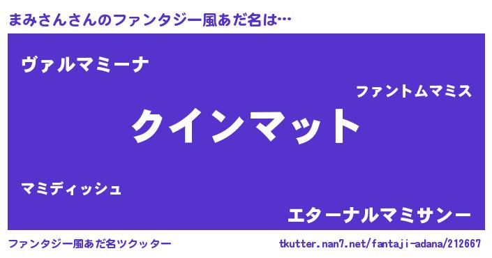 | 男性向けラノベタイトル風あだ名 | 『おまえをオタクにしてやるから、俺をまみさんにしてくれ! 』 |