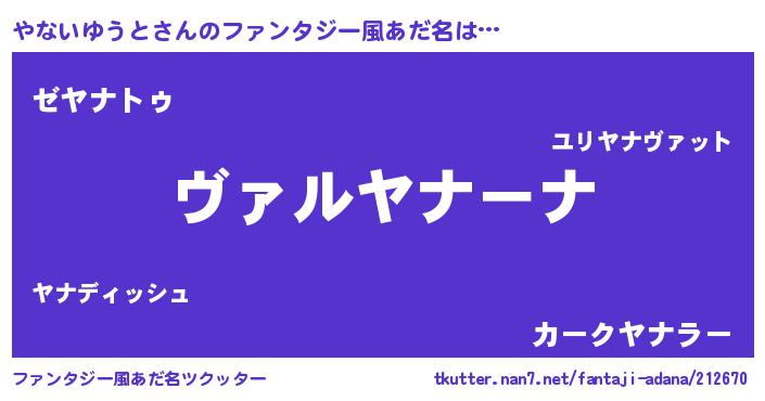 | ヒーロー風カッコイイあだ名 | 『仮面ヤナダー』『ネオヤナイユウト』 |