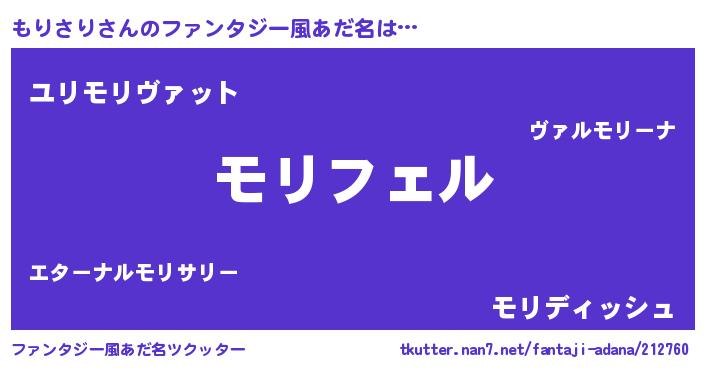 | 男性向けラノベタイトル風あだ名 | 『もりさりの憂鬱』『モリサリスレイヤー』 |