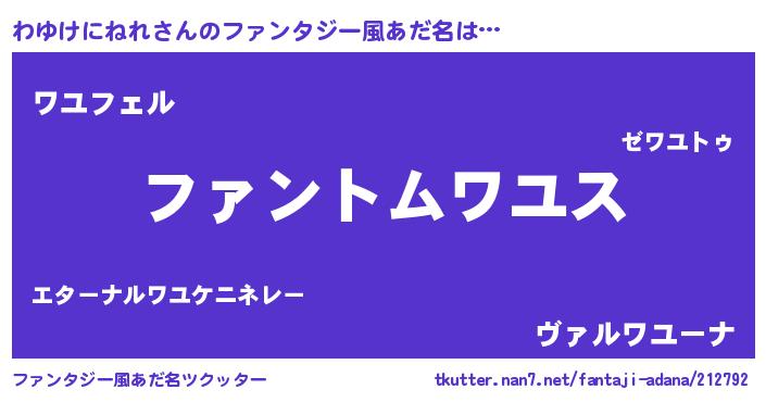 | ポケモン風あだ名 | 『ヒワユケニネレ』『ワユチュウ』 |