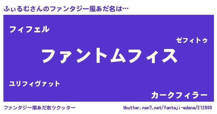 | 男性向けラノベタイトル風あだ名 | 『ふぃるむの嫁は女の子じゃないと思った?』 |