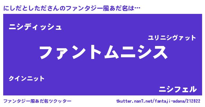 | 男性向けラノベタイトル風あだ名 | 『ダンジョンににしだとしただを求めるのは間違っているだろうか』 |