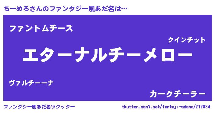 | ポケモン風あだ名 | 『チーメダネ』『ヒチーメロ』 |