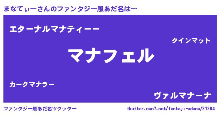 | 胡散臭い通販商品みたいなあだ名 | 『必ず成功する霊験あらたかなお札…その名も「まなてぃー」』 |