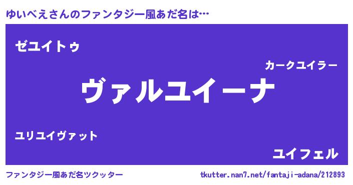 | 男性向けラノベタイトル風あだ名 | 『魔弾の王とゆいベえ』『ゆいベえの憂鬱』 |
