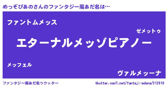 | 意味不明あだ名 | 『めっぞぴあのフォーエバー』 |