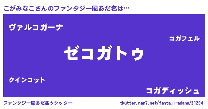 | 男性向けラノベタイトル風あだ名 | 『Re:こがみなこから始める異世界生活』 |