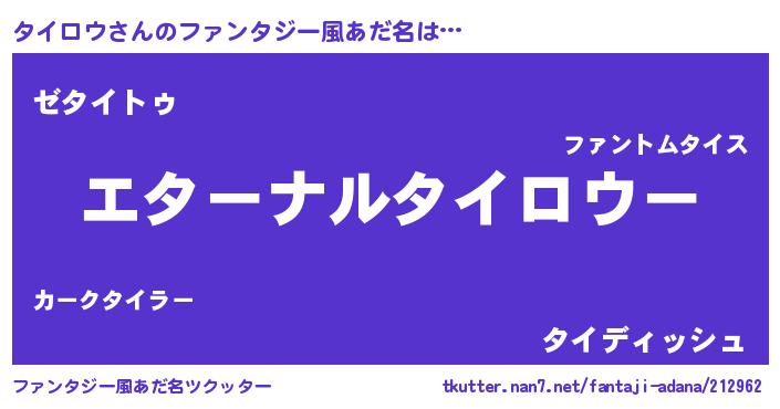 | 女子向けラノベタイトル風あだ名 | 『タイロウの婚約者』『闇のタイロウ』 |