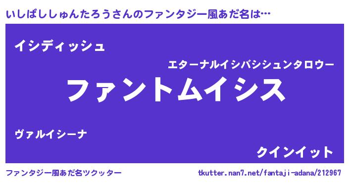 | 女子向けラノベタイトル風あだ名 | 『いしばししゅんたろうは平凡を望む』 |