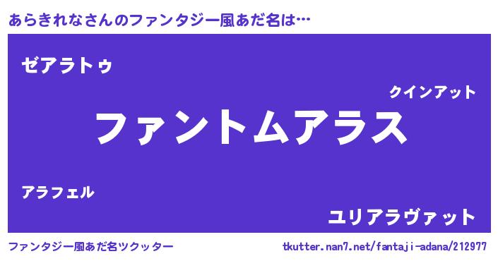 | 女子向けラノベタイトル風あだ名 | 『あらきれなは平凡を望む』 |