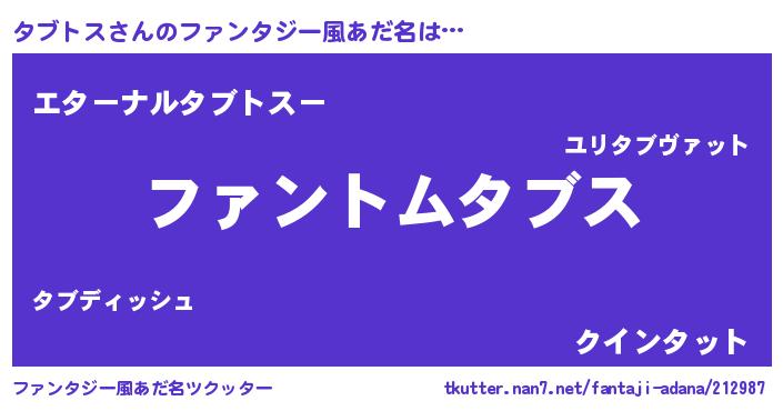 | 男性向けラノベタイトル風あだ名 | 『ダンジョンにタブトスを求めるのは間違っているだろうか』 |