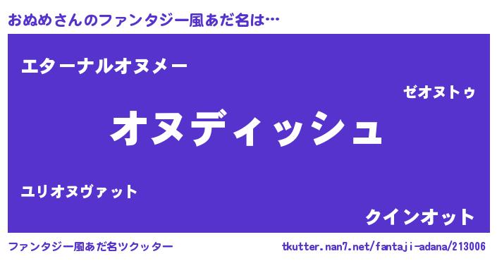 | 女子向けラノベタイトル風あだ名 | 『おぬめの契約王妃』『おぬめ恋絵巻』 |