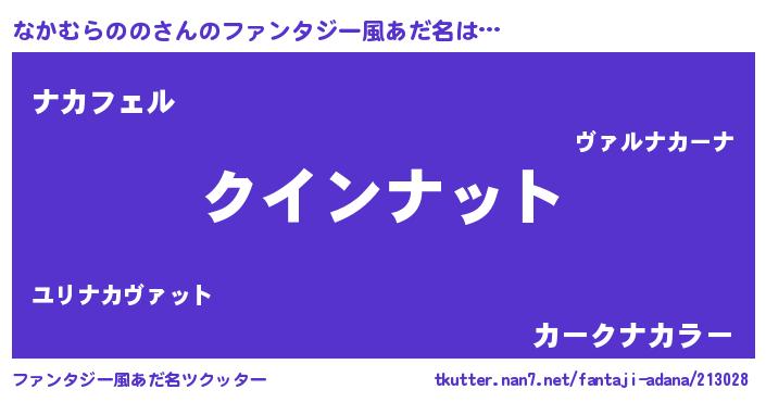 | 男性向けラノベタイトル風あだ名 | 『ノーゲーム・ノーナカムラノノ』 |