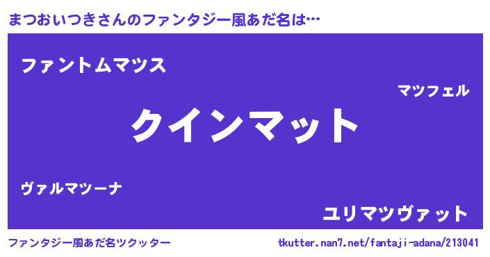 | 女子向けラノベタイトル風あだ名 | 『まつおいつき夫妻のなれそめ』 |