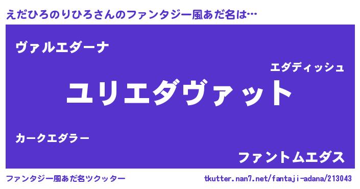 | 男性向けラノベタイトル風あだ名 | 『エダヒロノリヒロスレイヤー』 |