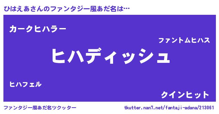 | ヘコむあだ名 | 『ひはえあ(震え声)』『ひはぷりん』 |