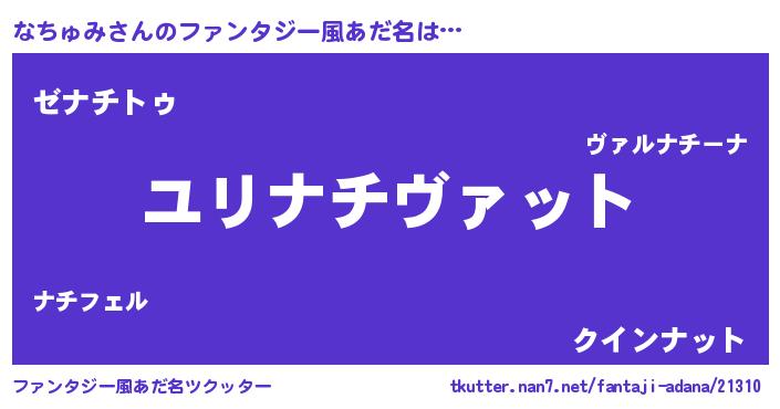 | 男性向けラノベタイトル風あだ名 | 『転生したらなちゅみだった件』 |