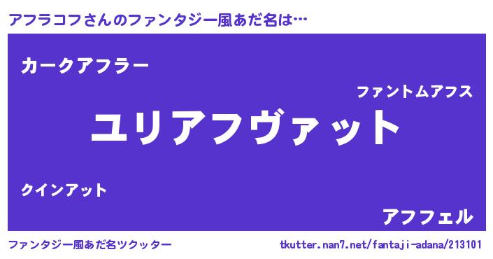 | ヒーロー風カッコイイあだ名 | 『スーパーアフラコフ』『銀牙騎士アフ』 |