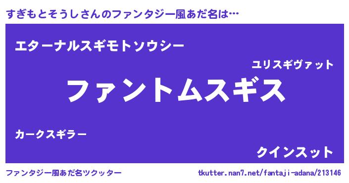 | ポケモン風あだ名 | 『ヒスギモトソウシ』『スギモダネ』 |